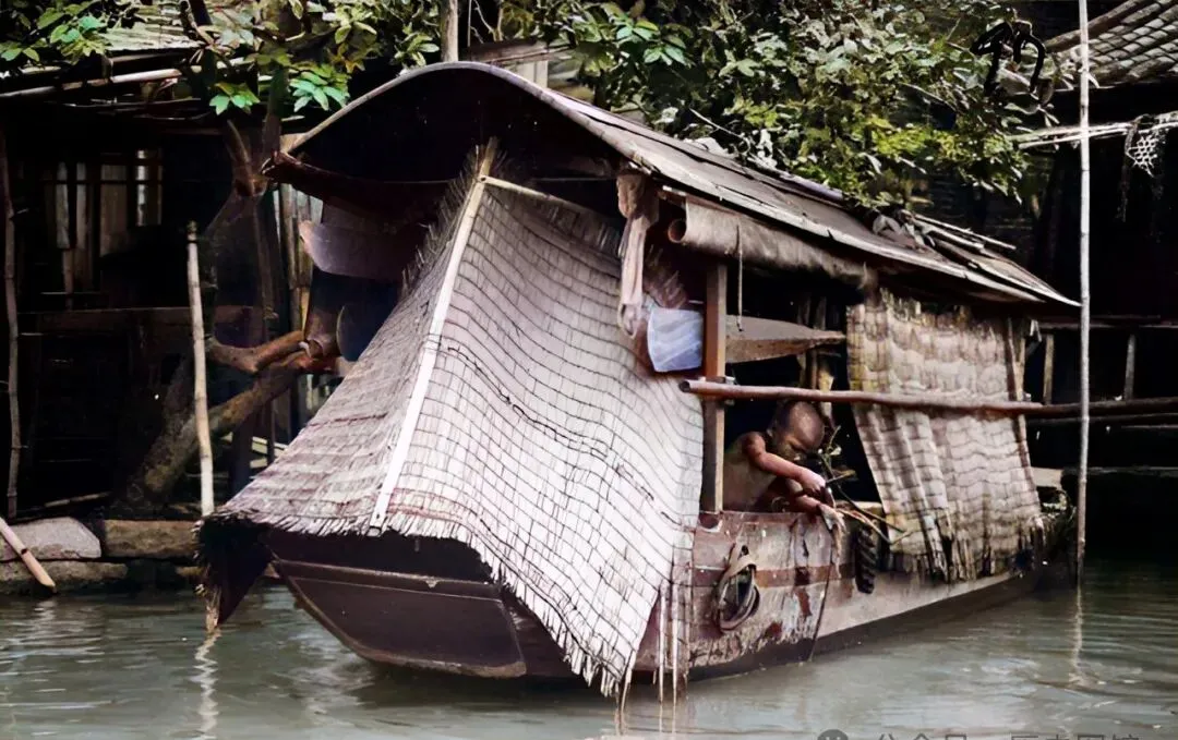 舢板密密挤着水面,一家户口一个小窝,棚子上竹帘垂到水面,里头柴米油盐、鸡鸭猫狗、全在方寸之间,活法扎实,街坊亲戚没事坐船头晒太阳唠嗑。