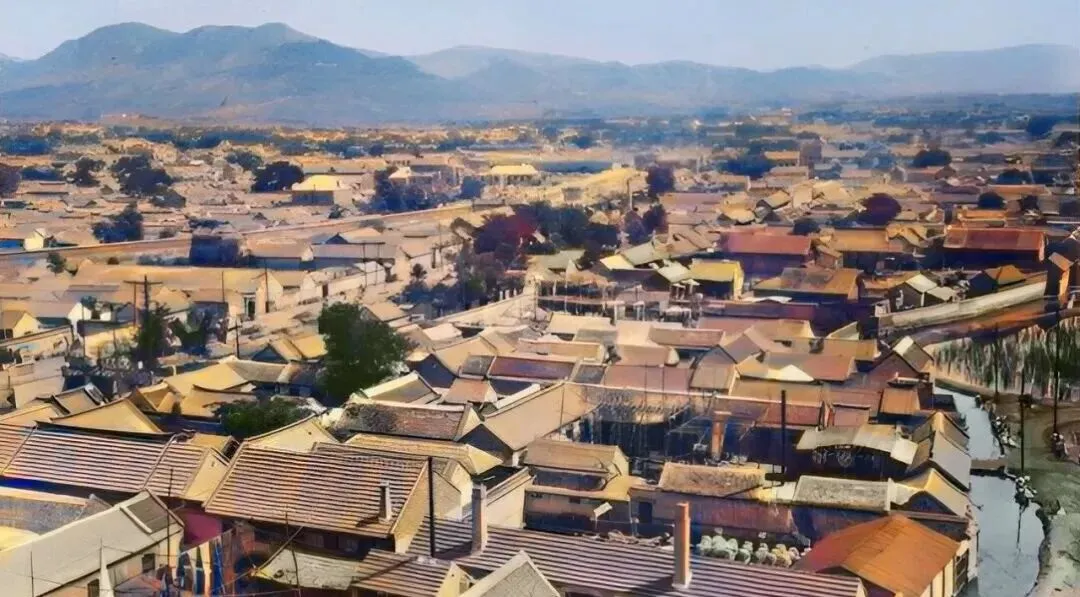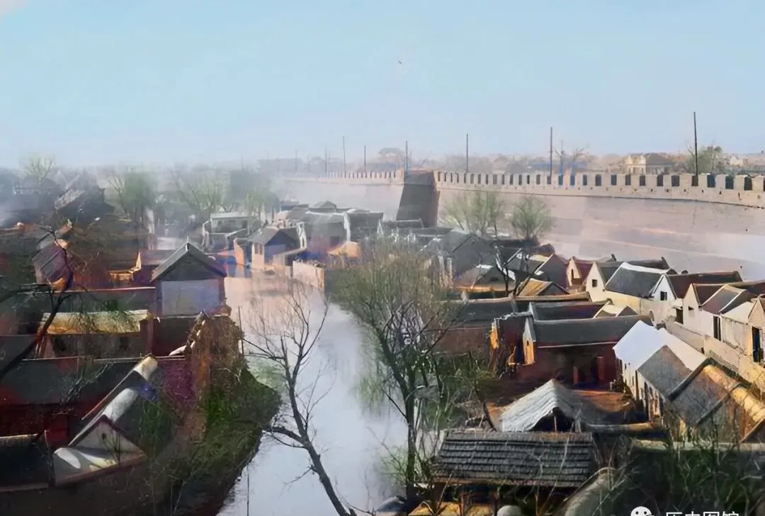 城墙外的护城河,水面倒影反着一排排灰砖高墙,水边是小屋密集,过去说“家家泉水、户户垂柳”不是吹的,从墙头往下望,家里的大人刚好收完晾在院里的棉被,下雨前赶紧盖好,一家人沿着护城河慢慢晃过去,谁都不急。