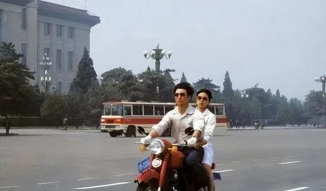 以前总觉得那个年代都很朴素,可看到这种照片,印象会被改一下。原来那时候的年轻人,也很会讲究体面,也知道什么叫拉风。尤其摩托一上街,和自行车、人力车的感觉完全不一样,它带来的不是一点点方便,而是一种明显的生活升级。