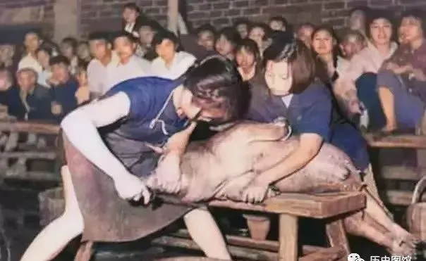 老照片集:50年代女青年杀猪果断,群众看呆
