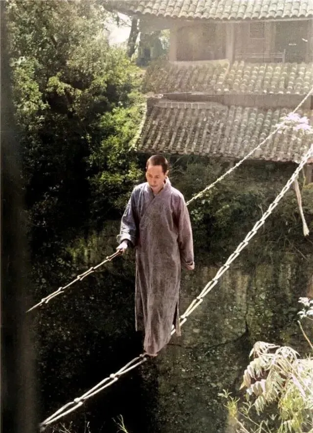 照片里这景,看得脚底发麻,一个和尚穿着旧袍,光着脚不慌不忙走在铁链上,下面就是悬崖,真让人一身冷汗,手里没拿啥,眼睛往前一看,动作一点都不狼狈,这“轻功”可不是电视里飞檐走壁那么神,师傅都是靠年头,一步步踩稳慢慢练出来的。