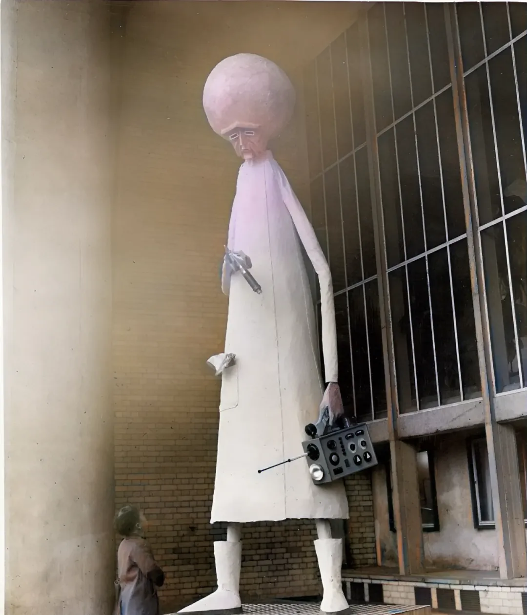 再说一件有意思的事,图里这个身影让不少人看着一愣,老远一瞧,灰头大脑袋、长袍、手里还拿着工具箱和注射器,小时候要是碰见了指定吓一大跳,这其实是博物馆门口的外星人模型,那会科普氛围足,人人都讲科学,孩子们围着转半天,爸妈还逗一句“还敢不敢瞎看电视里的UFO啦”,许多新鲜玩意进校园,全靠书本和传说,哪像现在一部手机查半天还能看视频。