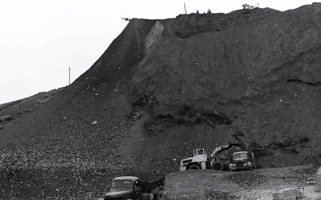 70年代时的焦作堆积如山的煤矸石。