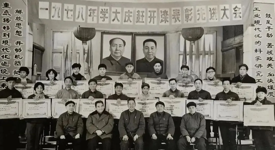 1978年在学大庆赶开滦表彰先进大会上获奖的焦作煤矿工人,1977年全国煤炭工业掀起学大庆、赶开滦活动。