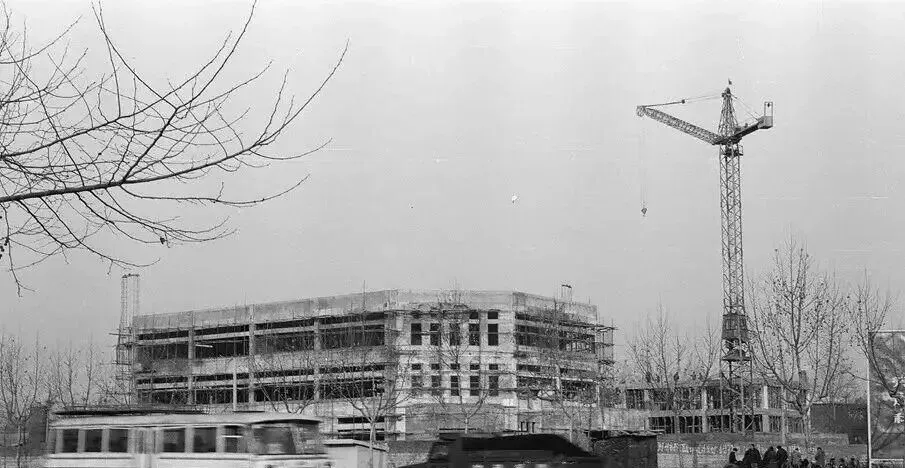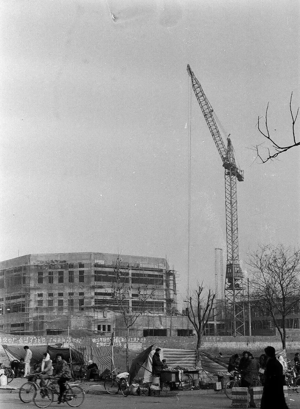 1987年建设中的焦作市邮电局三分局(现联通公司六号院营业楼)和中国银行焦作分行办公大楼。