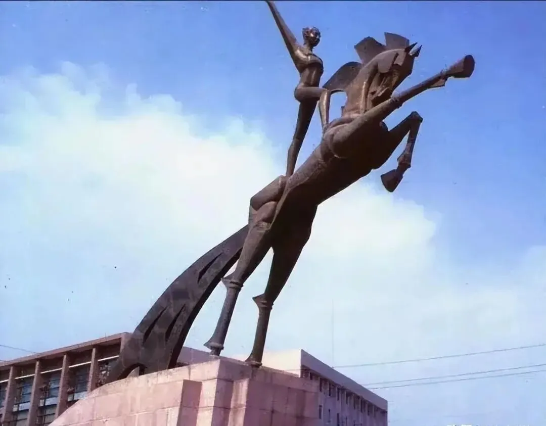 焦作腾飞铜马雕塑,腾飞铜马雕塑位于民主路与建设路交叉口,雕塑是一名骑士驾着一匹腾空而起的骏马,寓意焦作人民奋发昂扬的精神风貌,雕塑长12米、高13米、重7吨,1985年12月30日揭幕。