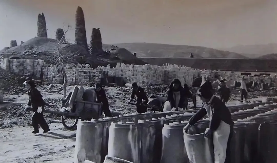 昔日的焦作中站煤矿陶瓷厂为矿山生产的陶瓷淄煤槽场景。
