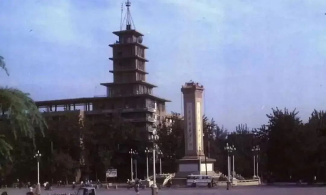 80年代时的焦作英雄纪念碑和电视台。