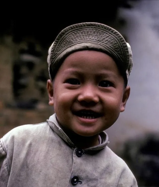 这一张我特别喜欢。孩子咧着嘴笑,牙还没长齐,帽子戴得板板正正,衣服扣子扣到最上面,脸上没有一点怕镜头的拘谨。很多人怀念过去,其实怀念的不一定是条件多好,而是这种小孩身上很自然的松弛劲儿。没玩具满地、没零食一堆,可一个笑,就把人看乐了。照片里哪个细节最打动你?我先投这张一票。