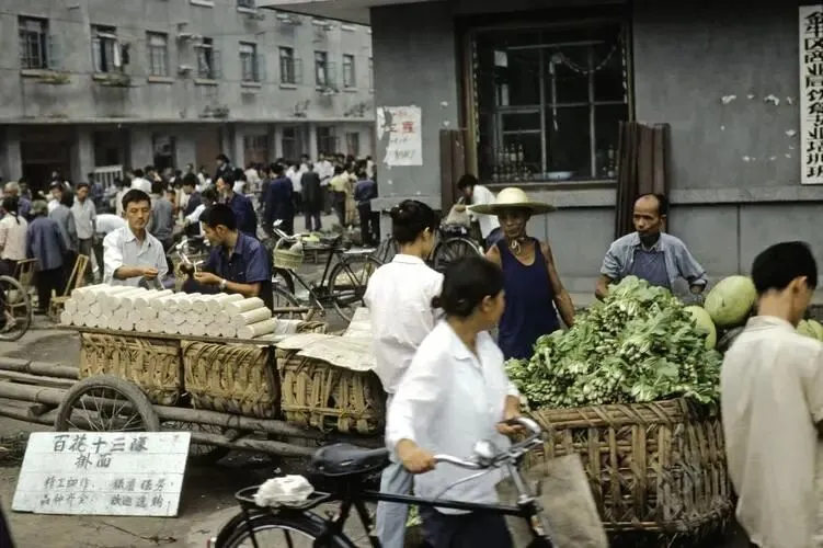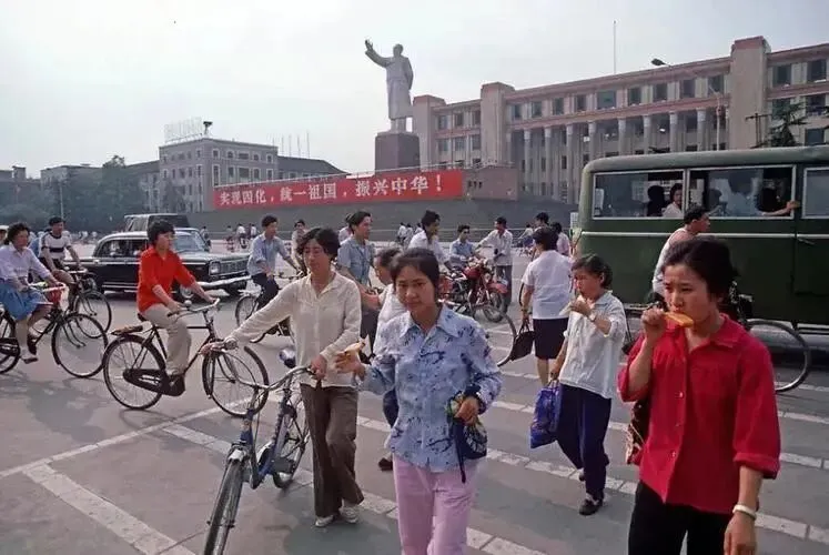 图一:80年代,成都街头随拍,照片中下班的人们骑着自行车边聊天边骑行。图二:80年代,成都街头随拍,这是一个早晨集市,售卖摊主有卖挂面的,有卖蔬菜的。图三:80年代,成都街头随拍,照片中一个巨幅倡导计划生育的宣传画,宣传画下边是黑板报。图四:80年代,成都天府广场矗立着毛主席雕像,是城市核心,在广场边上人们在汽水摊旁购买汽水。图五:80年代,成都天府广场随拍,照片中广场前的大街上人们有的骑着自行车,有的步行,偶尔看到一辆轿车,一辆公交车。图六:80年代,成都一处街景随拍,照片中一位交警人员穿着制服站在指挥台上若有所思。图七:80年代,成都街头随拍,照片中两位少女穿着时尚,正在街头闲聊。图八:80年代,成都街头随拍,照片中人们穿着夏装正在排队,男士穿着牛仔裤,女士穿着各色的裙子,很是靓丽。图九:80年代,成都小南街随拍,照片中两个小姑娘正在注视着这家小卖部挂着的贴画。图十:80年代,成都街道十字路口随拍,照片中能俯瞰这条宽阔的街道交叉路口的景象。 80年代的成都,主街以梧桐为骨架,枝叶交错把影子拉得老长,阳光透过叶隙洒下斑驳光点。街道极干净,清晨有清洁工人工清扫,扫帚划过地面的 “沙沙” 声是城市序曲。汽车稀少,自行车是绝对主力,“永久”“凤凰” 牌二八大杠穿梭如织,车铃 “叮铃铃” 响个不停。 成都街头能看到巨幅宣传画,“五讲四美” 是热词,人们穿着虽朴素但精神面貌积极向上。不同年龄层穿着差异明显,老人穿传统对襟褂,年轻人则追逐潮流,新旧交融间,是成都服饰文化的快速蜕变。 80 年代的成都,是慢节奏与新变革交织的川西市井长卷。没有如今的车水马龙,只有自行车洪流与市井烟火,老成都的韵味与改革开放的新风尚,在青石板与梧桐树下温柔碰撞。没有繁华喧嚣,却用最朴素的日常,留住了一代人温暖的时代印记。