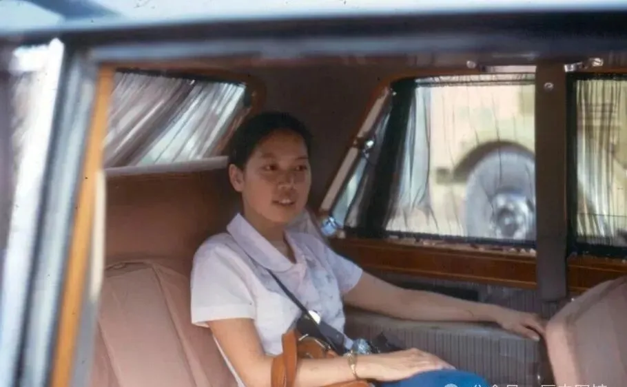 图中这辆轿车,座椅铺得厚厚软软,窗帘拉得整整齐齐。女工作人员坐在里面,肩膀带着包,透着股戳劲。那个年代谁能有辆私家车,都不是普通家庭,用车大概也是公家的事。