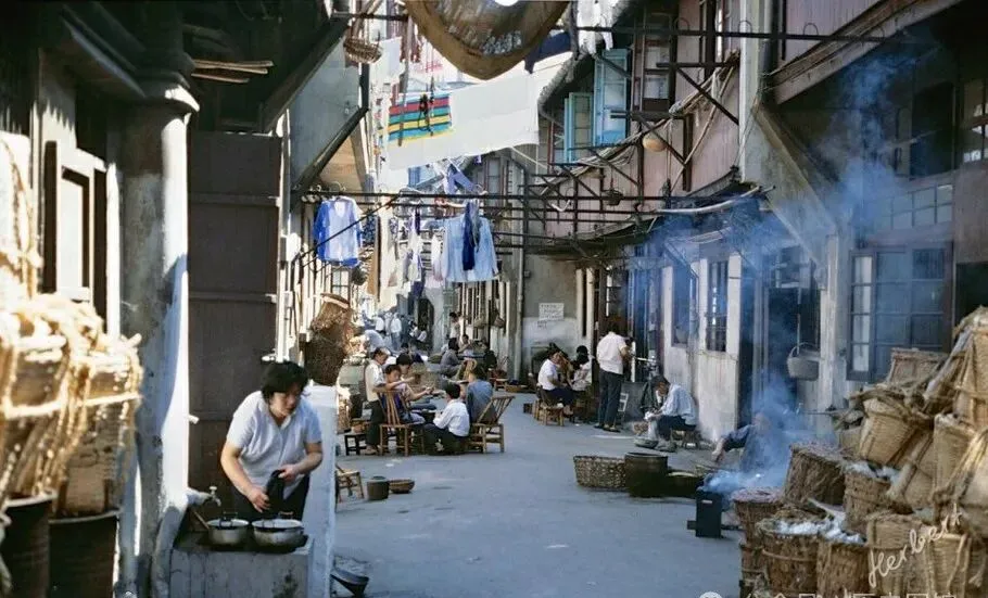 这个小巷子,谁要是住过都懂,生煤炉做饭的烟味儿走十米八米都有,左边架着黑铁皮炉子、煤球摞得高高的,右手边家家门口码筐堆,还能看见有些人在刷锅、切菜,裤管一掐,大人小孩都来帮忙。