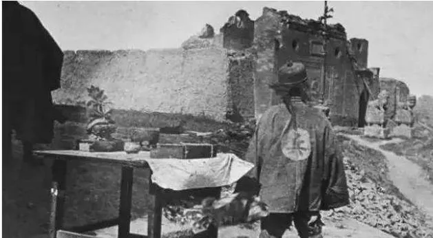 背对镜头的人,衣服后头一个“兵”字最醒目。可真看他本人,衣衫旧,头发乱,站在破败残墙前,哪有半点威风。第一眼看过去,我还真有点看走眼。原来旧时底层兵丁很多时候也不过是苦人一个,穿上号衣,身份变了,处境却未必变多少。