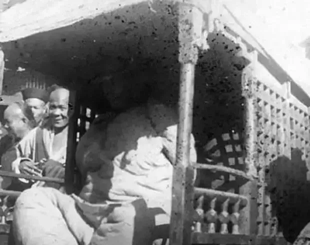 这一张里,女人被关在木制囚车里,外面还有人围看。囚车的木栏很粗,空间狭小,像个会移动的笼子。那种公开示众的意味,比关在屋里更难受。现在回头看,会发现老照片之所以震人,不是它旧,而是它把人和制度之间那种硬碰硬的关系,留得太清楚了。