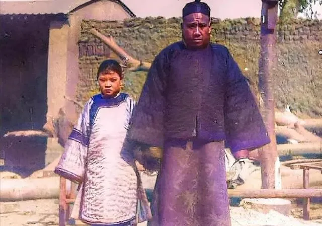 这张题目里提到的“地主小妾小家碧玉”,看照片确实能理解。男人个头高,站得很沉,小妾则显得年轻,脸还带着一点稚气。不是那种张扬的漂亮,而是细细一看,眉眼很清秀。旧照片有时候就是这样,不用多说,人物关系和气氛自己就出来了。