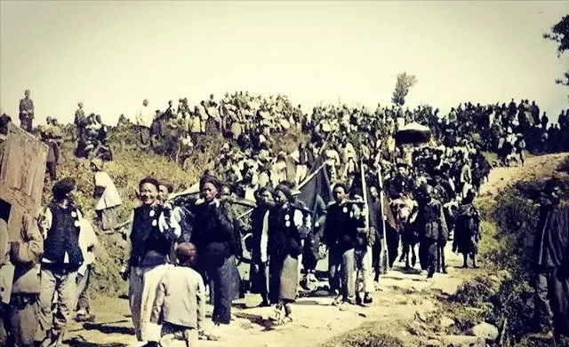 这一张声势真不小。队伍沿着路往前走,两边山坡上全是围观的人,抬轿的、跟班的、看热闹的,挤成一片。这样的场景,今天已经很难见到了。热闹背后,其实也是森严的等级,谁走中间,谁站两边,分得清清楚楚。