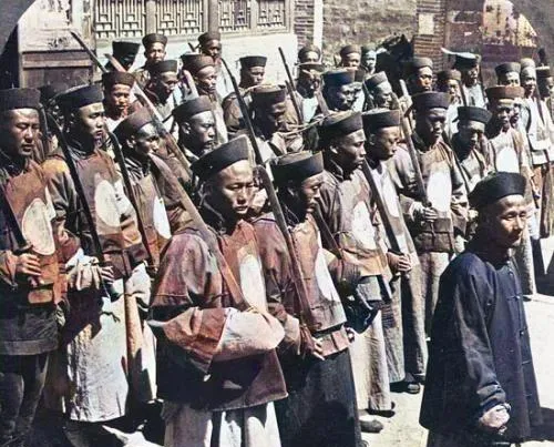 但这种变化看着又有点别扭,像旧骨架上硬套新衣服。前面还是草鞋、长袍、辫子,后面已经开始讲制服、讲枪械、讲队列。一个时代快结束的时候,照片里常常就会出现这种混杂感。旧的还没退干净,新的也没完全站稳。