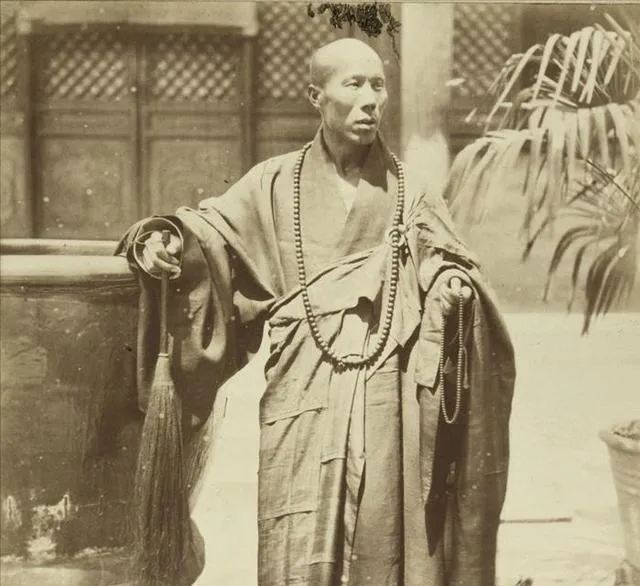 最后再看僧人和“壮勇”这些照片,会发现老照片真正耐看的地方,不是它旧,而是它把人留下来了。那个拿拂尘的僧人,神态安静;那几个瘦瘦的壮勇,赤着胳膊,胸前挂着字牌,站得还挺硬气。可那种硬气里,又透着生活的不容易。