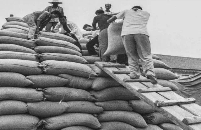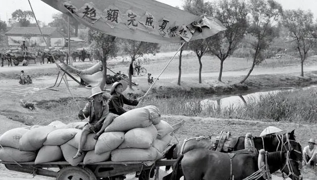 这三张连着看,分量就出来了。马车拉着粮袋,场院里人来人往,最后是一袋袋粮食堆成小山。过去农民最怕也最绕不开的事之一,就是交公粮。挑、抬、扛、运,哪一样都不轻松。照片里看不见汗味,可你几乎能想象出那种忙乱:吆喝声、脚步声、麻袋摩擦声,全都混在一起。对很多老人来说,这真不是故事,是亲身经历。