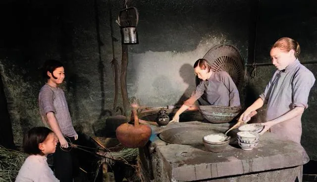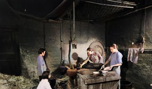 饭桌这张也挺出乎意料。桌上居然摆了好几样菜,碗碟不少,几个人端着饭碗吃得很认真。说实话,很多人一提1941年,脑子里先冒出来的是“兵荒马乱”,可一张饭桌就把那种单一印象改了一下。日子再难,老百姓也总是在想办法把一顿饭过得像样一点。