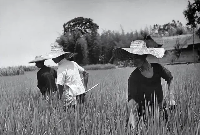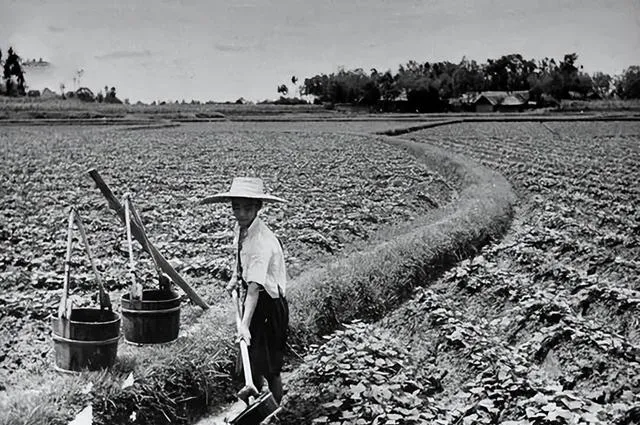 成都平原的田,看着是真舒服。田埂弯弯的,地势平,远处有树,也有人家。一个人戴着草帽挑水,几个人弯腰在稻田里除草,动作很熟,姿势一看就是天天干。这样的画面,放在今天很多人眼里会觉得辛苦,可在当时,这就是最普通不过的日常。土地、灌溉、收成,跟一家人的饭碗直接连着。