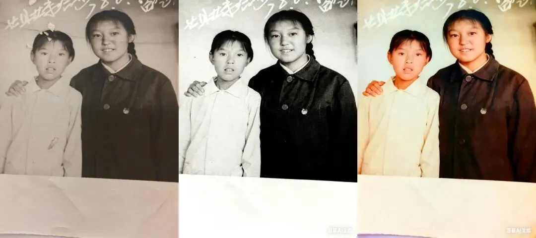 这张老照片,是在学校旁边一位阿姨家里拍的。那时候的农村,哪有什么照相馆,阿姨家墙上挂一块布,就算是简易背景墙。我和妹妹站在前面,既拘谨又兴奋,眼睛紧紧盯着镜头,“咔嚓”一声,就把年少时光永远定格下来,成了如今最珍贵的回忆。照片洗出来后,我们开心了好几天,觉得又新鲜又洋气。