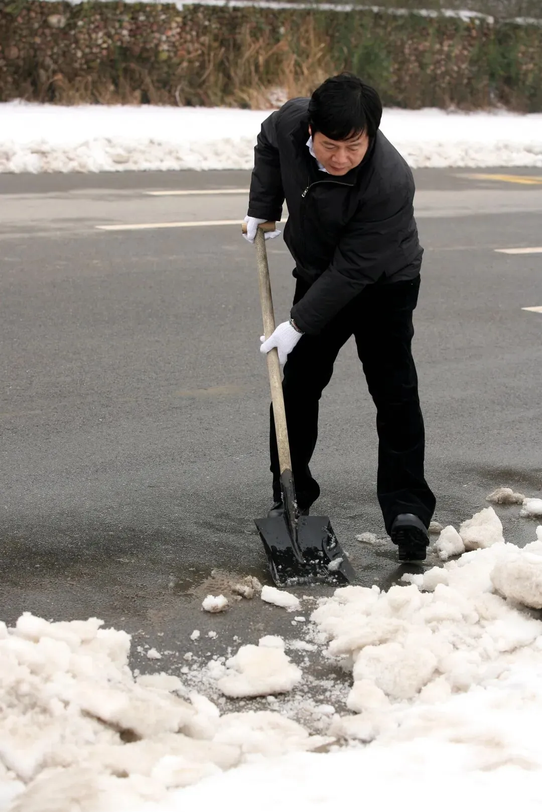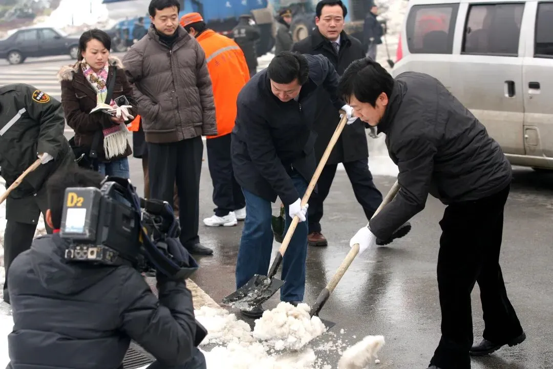 2008年1月30日,长沙下雪,天寒地冻。时任长沙市副市长徐湘平,来到市政府北门的马路上,和岳麓区的干部群众一起铲雪除冰。当年,湖南发生冰灾,给城市乡村的生产生活造成了严重影响。