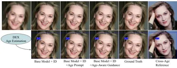 极端年龄控制:论文发现,对于“80岁”等高年龄提示,模型有时会产生过度锐化的伪影。如何更精准、更平滑地建模整个生命周期的年龄变化,是一个挑战。