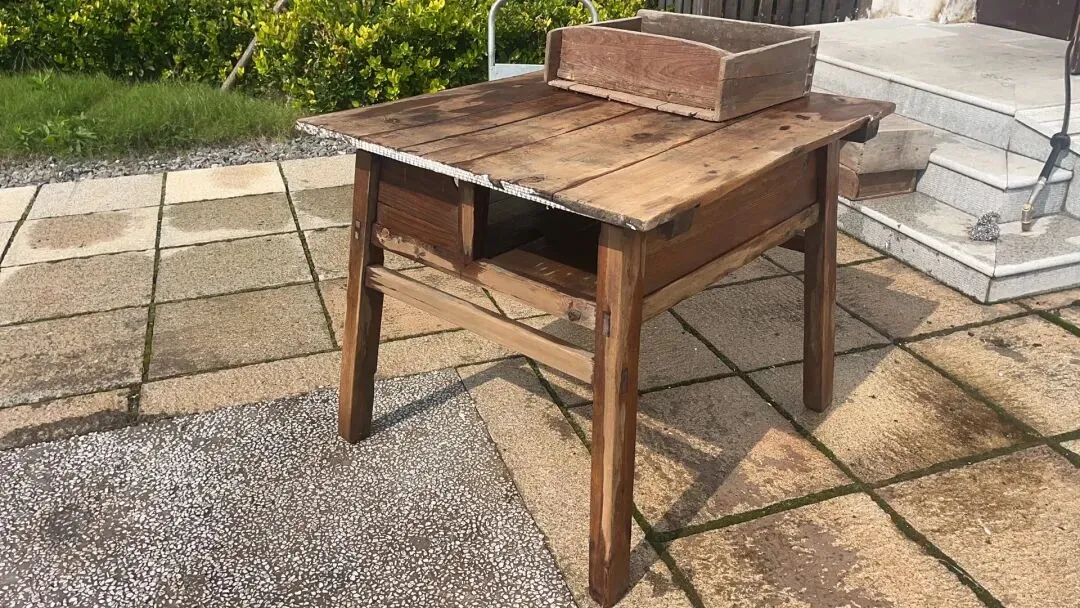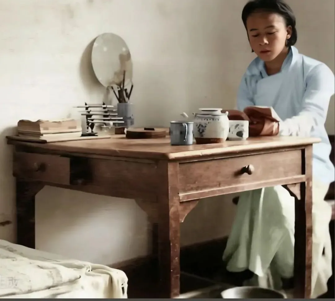 这是南京大学宿舍的一张桌子,我在垦牧周围农村里发现一张桌子,结构跟他差不多,一面靠墙无抽屉,正面大抽屉,两面小抽屉。我这张桌子材料很重,可能是柞贞的,我现在当电脑桌用。这些农村的老人说,这是公司里的牌桌,但是很奇怪,这张也不是方正的,一面无抽屉,两边小抽屉,正面大抽屉。很显然不是牌桌。这个谜题一直到了5年后的现在刷到南京大学的宿舍居然进行一张结构差不多的桌子估计也就是差不多是集体学生宿舍的课桌了。像这些东西书上是不会记载的,照片里能反映出很多的信息,所以历史档案照片的细节很重要。密切关注,一样能获得更有趣的信息。