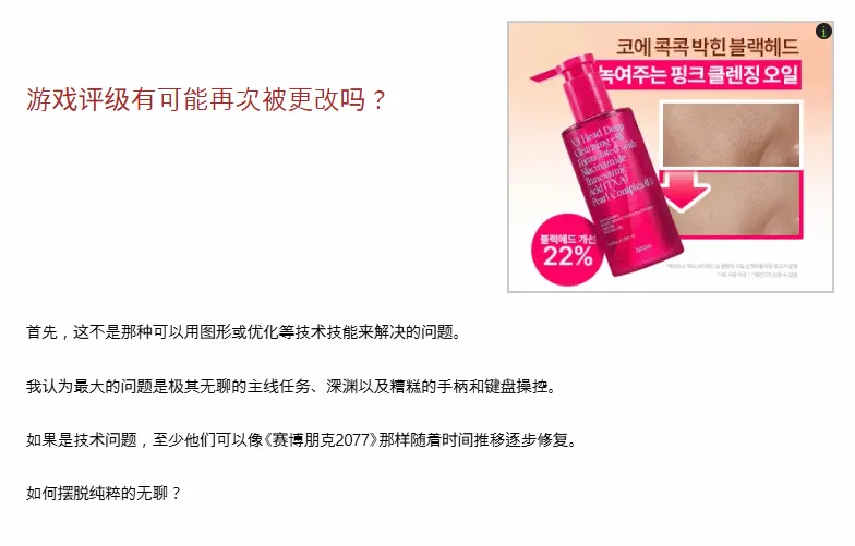 也有玩家讨论游戏评分能否反转:“问题不是技术层面能修好的——无聊的主线、愚蠢的操作感……《赛博朋克2077》那种技术问题能靠补丁修,纯无聊怎么修?”