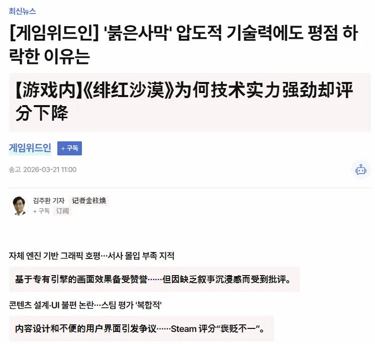 《红色沙漠》褒贬不一!韩国人自己也被整破防