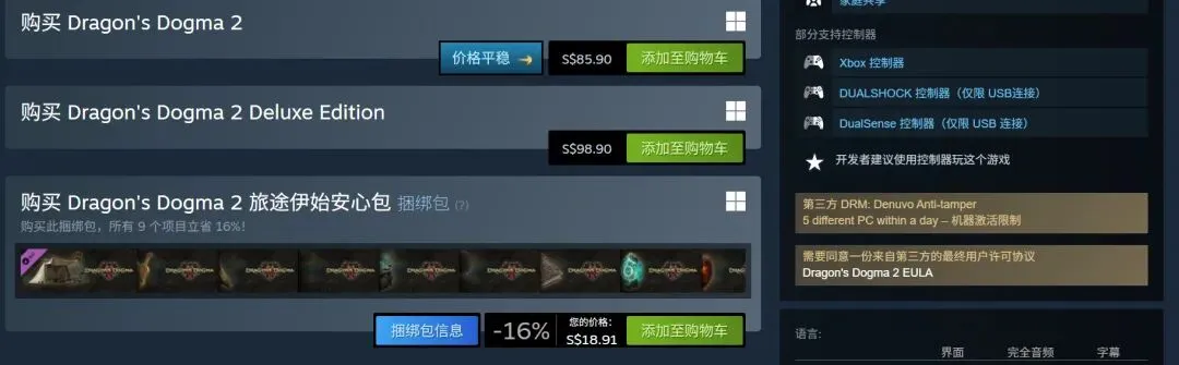 记者最后总结道,本作评分较低,其原因也有制作组并未站在玩家的视角体验游戏,本作的诸多设计都相当“反人类”,例如背包格子,以及被大家都说烂了的按键问题。《龙之信条2》发售两周年 Steam版还有D加密