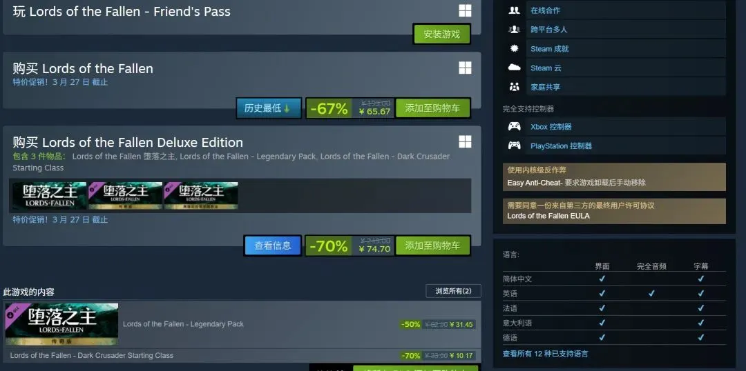 《堕落之主》销量超250万套 Steam 65元促销