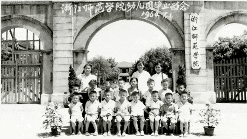 1964年时的浙江师范学院本部大门,当时附属幼儿园的一群学生在此毕业留影。如今这些学生仍有不少尚在浙师工作