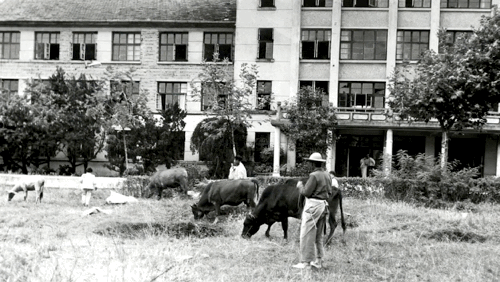 1974年恢复重建后到八十年代初,学校校园萧索,高村村民时有到校园放牛吃草,师生戏称学校为“牛经大学”