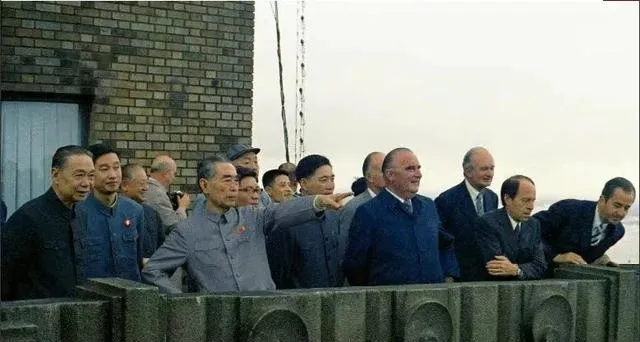 第一张最抓人的,是周总理伸手指向远处的那个动作。动作不大,但特别有画面感。旁边的外国政要、西装、呢大衣、砖墙、栏杆,连大家身体微微前倾的姿势,都像在说明:这一刻,所有人的注意力都在同一个方向。要是不说年份,你会不会觉得这画面有种电影镜头感?可它偏偏是真的老照片,真实得很。