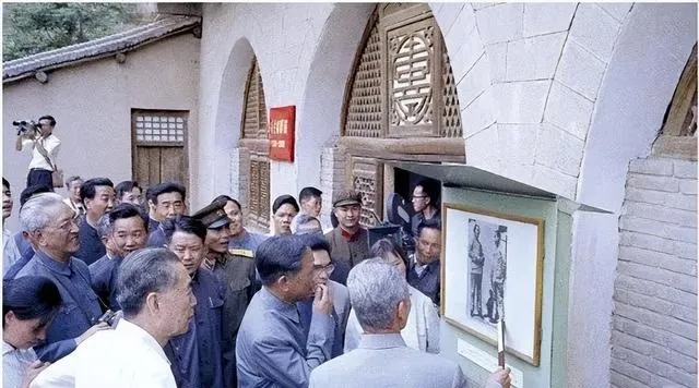 这张照片里,最有味道的是窑洞门口那一圈人。有人抬头看展板,有人侧身往里挤,还有人站在后面踮着脚。土墙、木窗、红色标语、小展框,这些细节一出来,延安的旧景就立住了。照片无声,可那种边走边看、边听边想的气氛很浓。人群并不喧闹,却让人觉得时间一下慢了下来。
