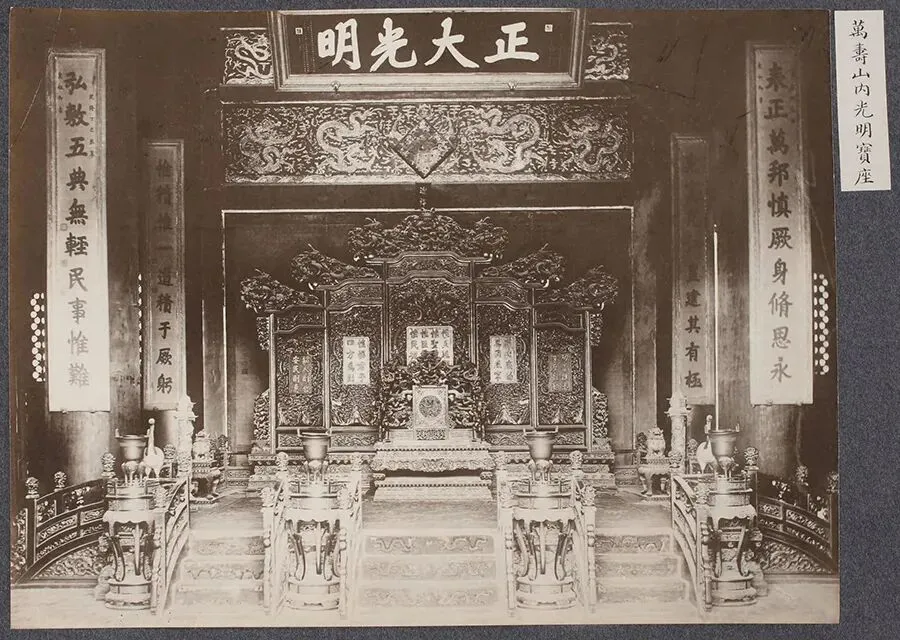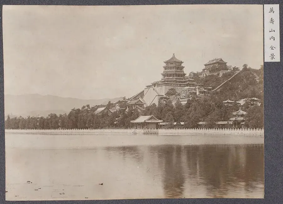 让人惊讶的是,里面记录的,居然是清朝时期北京城的盛景和民俗风貌,每一张老照片都是绝版。看完之后你会发现,与想象中的清朝不一样!这四本影集,内含96幅老照片,每幅右上角都贴有中文注释标签。在相册的木质夹板封面上,写着明治三十九年,即1906年。但照片拍摄者不详。影集主要记录有清末北京城建筑名胜,有北京紫禁城、颐和园、孔庙、东交民巷、十三陵、碧云寺、长城等,还包含部分市井风俗与人物肖像。现在,笔者就将这四本影集依次分享给大家。本篇是第一本影集的内容,共有24幅高清老照片。老照片搜集不易,值得珍藏!这是当年慈禧太后乘坐的御船,相当豪华。此船名为“木兰艭(shuāng)”,是光绪时期颐和园重修时,专为慈禧太后万寿庆典而设计。此时,御船停在码头边,引来不少人围观。这张照片右上标签写的是“万寿山内光明宝座”。实际上,这是紫禁城乾清宫宝座。金色的宝座、屏风、盘龙藻井,显示了威严的皇家气派。这是著名的颐和园玉带桥,标签上写的是“龙王桥”。桥身、桥栏用青白石和汉白玉石雕砌,曲线优美,宛若玉带。100多年前,颐和园十七孔桥雄姿,风光古朴自然。十七孔桥是一座联拱石桥,是中国园林里最大的桥梁。站在颐和园昆明湖畔,远眺万寿山。万寿山湖光山色,风光旖旎。殿宇依山势修建,高低错落,气势恢宏。这座三间四柱七楼牌楼,是万寿山建筑群中轴线的起点——"云辉玉宇"牌楼。它紧邻昆明湖,建筑等级高贵。这张照片,是从另一个角度拍摄的万寿山风貌。山顶殿宇众多,树木郁郁葱葱,植被茂盛。这是通往万寿山的御路,一座三间四柱七楼牌坊,横跨在大路之上。牌坊下有卫兵站岗。透过牌坊,远处的万寿山风貌清晰可见。100多年前,北京五塔寺的金刚宝座塔,始建于明永乐年间(1403-1424),是中国现存最早的金刚宝座式塔之一。这座有圆形屋顶的建筑,是北京大钟寺的大钟楼。大钟楼上面的匾额“华严觉海”,是乾隆皇帝亲笔所写。这是位于北京大钟寺里的永乐大钟,它是在明朝时期铸造的,材料以铜为主,是没有使用模铸一次铸成的。100多年前,北京黄寺。该寺始建于顺治九年(1652年)。寺内的牌坊和宝塔跟现在相比,变化不大。建筑群由塔前牌楼、护塔兽、主塔、塔后牌楼及东西碑亭组成。牌坊前的台子有些坍塌。北京天宁寺塔雄姿,塔下建筑跟现在不一样。天宁寺塔,是中国现存的密檐式砖塔中较典型的一座。清朝时期,北京内城西南角楼,建于1439年,其结构规制同内城箭楼。远处,一座座凸出城墙的敌台下,有一支驼队正在行进中。这是当时北京景山前景象。山下一条土路,几辆马车驶过,扬起尘土。想不到,100多年前的北京地安门大街如此的繁华。街道宽阔笔直,自万宁桥至景山后街,一眼望不到尽头。这是当时的北京钟楼。为全砖石结构的重檐歇山顶建筑,沉稳大气。北京鼓楼,为重檐三滴水木结构楼阁式建筑,庄重华丽。从这个角度,能看到不远处的钟楼。北京国子监辟雍,殿内无柱,是乾隆及后世皇帝举行 “临雍讲学” 的专用大殿。始建于清乾隆四十九年(1784年),是我国现存唯一的古代“学堂”。这是国子监的琉璃牌坊,是北京唯一不属于寺院的琉璃牌坊。牌坊前后的横额上,都是乾隆皇帝的御笔题字。这是北京文庙的大成门,大成门是文庙的最后一道大门,门前台阶上有龙纹浮雕。过去大成门前还没有孔子雕像。穿过大成门之后,远处映入眼帘的就是大成殿。大殿前古树参天,十分幽静。一名男子从大成殿前走过。这是当时大成殿内景象,正中有孔子的神牌,上方悬挂有“万世师表”、“与天地参”、“生民未有”等牌匾。写在最后:这是四本影集中的第一本,看完这些老照片,是不是很惊讶,100多年前的北京原来是这样的!下一篇,笔者继续分享四本影集的第二本,您将看到雍和宫、东单牌楼、东交民巷、六国饭店、前门外东火车站、门大街正阳桥、前门外大街等。每一张照片都很珍贵,是研究近代历史的重要影像资料,值得收藏!