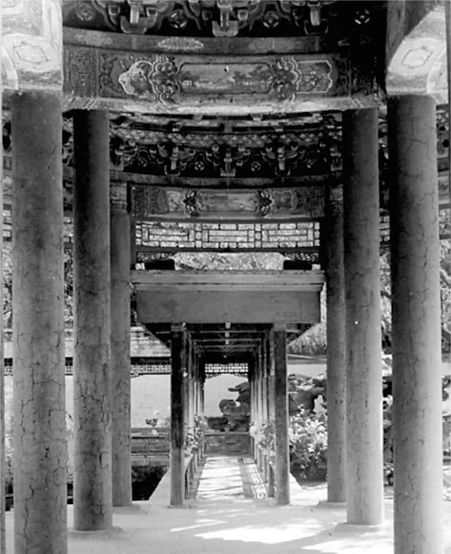 这条叫曲折长廊,不算宽,能拐好几道弯,廊顶的彩画铺满梁枋,一格一格画得精细,阳光斜着撒进来,地上就落一排暗格子,小时候听爷爷说,这长廊下当年走过的大人物排一串,规规矩矩,步子都得数着走,安静时能听见鞋底摩砖的咯吱声,站在这头往那头看,廊墙转了几道弯,挡了又透,似乎总有点等人路过的味道。