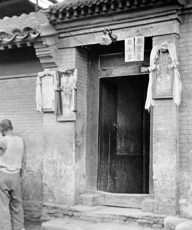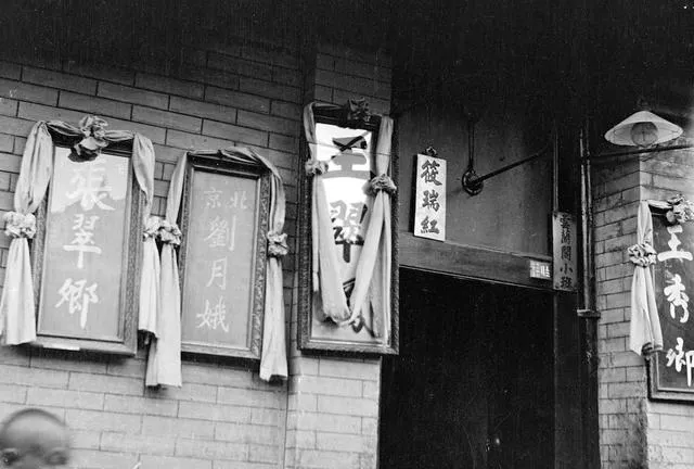 光看招牌就能认出这一段是唱戏的地盘,布幅子花扎得规规整整,黑边大字写得气派,边上还挂着姓氏榜单,戏班子谁唱得响谁的名字排头里,门旁那块“王寿柬”钻边角落里,也有点讲情面的意思,这种招牌岁数摆在那,过年换春联,平时谁家有事也都来找行里人张罗。