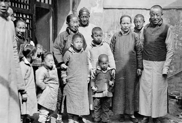 老北京的家族院里,三代人站一块凑齐了,一排排站得亲热,有笑有闹的劲头,照片里老大人穿着马褂,孩子们紧跟着,小手拉着大人袖子,老太太嘴角一点笑纹,家风就在这队形里写着,院门前一堵墙,外头热闹世界,院里一桌饭菜一壶热茶才是真滋味。