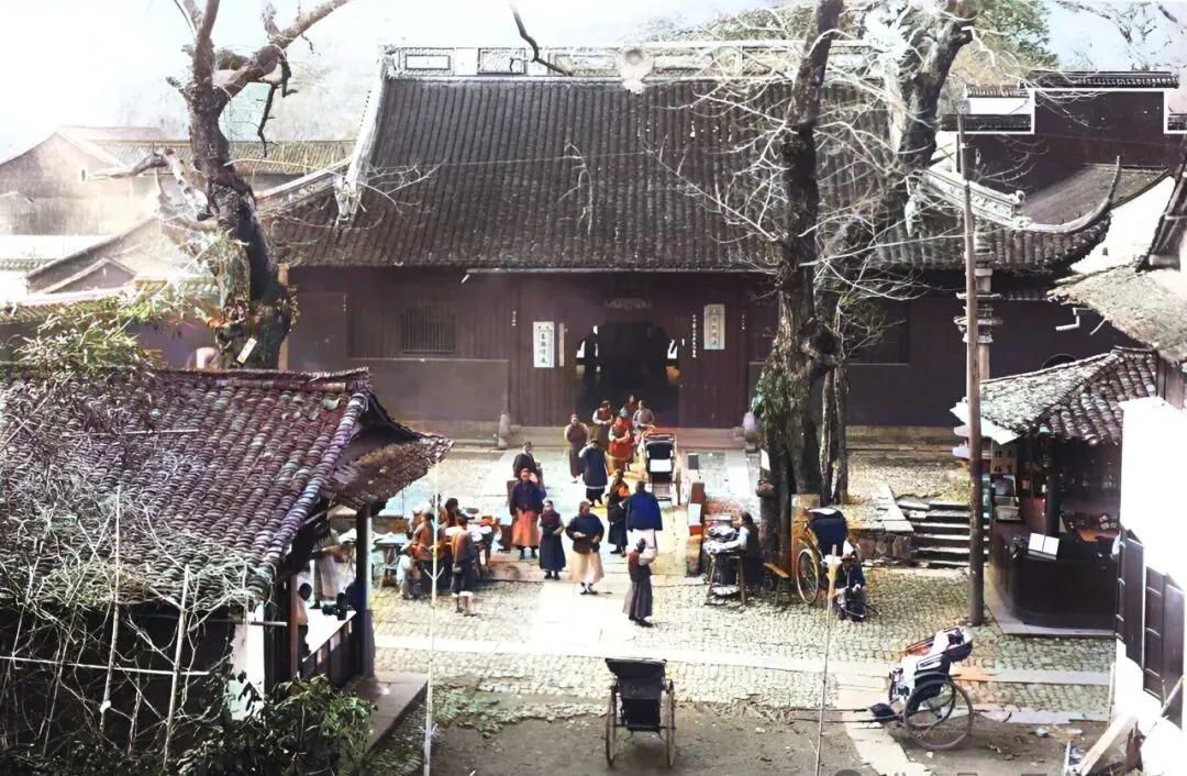 门口那块匾额清清楚楚,写着“灵隐古刹”,香客沿着青石板缓缓进出,有卖小吃的小推车,有个小孩合十作揖,老杭州人讲究“到灵隐烧头香”,寺门外声音热闹,门里却沉静得很,香火缭绕的劲儿,现在去还能闻见,不过多了点游客的声音,以前要安静多了。