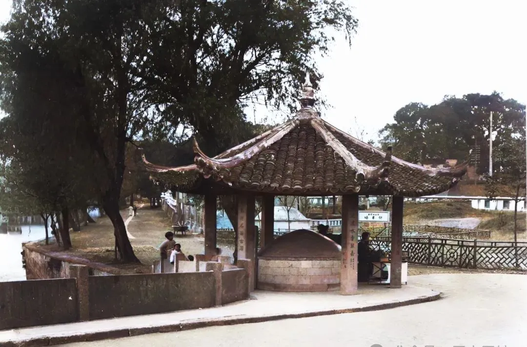 这个圆滚滚的石井,台壁上一溜深深的斑痕,三个大字“老龙井”,都被井绳磨得溜亮,杭州有名的古井,肩挑水桶来打水,水井口总有人等着往下去舀,晴天阴天都一样,井水喝着带一股甘甜,小时候听大人说,井水煮茶最对味,所以爱喝西湖龙井的都要认认这口井台。
