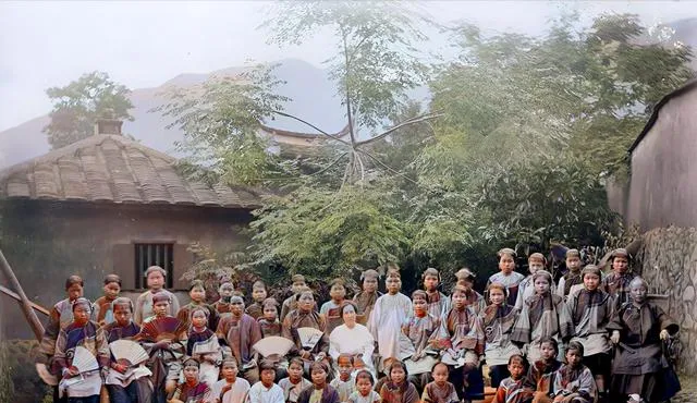 这一群女学生坐在院子里,最醒目的不是人多,而是整齐。衣服不算华丽,但都收拾得妥帖,头发也规规矩矩。中间穿浅色衣服的人很显眼,像是老师。以前一提晚清女子,很多人脑子里先冒出来的就是裹脚、深闺,可这张照片把那种刻板印象一下改了一点。原来那时已经有这么多女孩坐在校园里,安安静静地拍毕业照了。