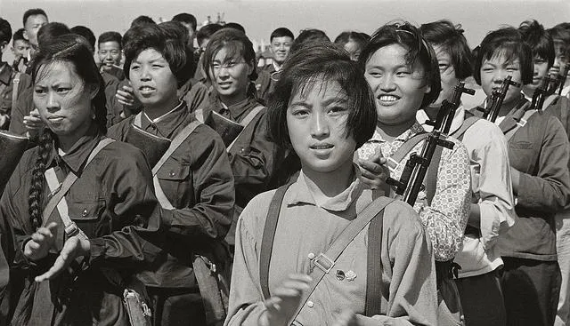 这张年轻人的照片,很容易让人停下来。姑娘们背着枪,头发被风吹乱,脸上既有稚气,也有一股很硬朗的劲儿。那种精神头,现在很少在合影里看到了。