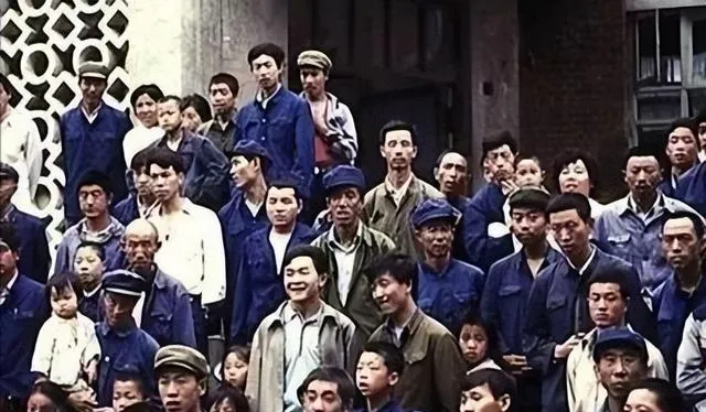 工厂照片里,蓝制服一大片,布料不讲究,可人站得很实在。孩子混在人群里,大人戴着帽子,像是一个单位,也像一个家属院。