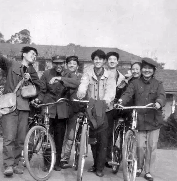 几个年轻人扶着自行车站在一起,笑得很开。衣服不讲究品牌,包也是最普通的帆布包,可整个人是精神的。80年代很多照片都有这种感觉:物质不算丰富,但人站出来,有股很直的劲儿。尤其是那种对未来的期待,藏都藏不住。