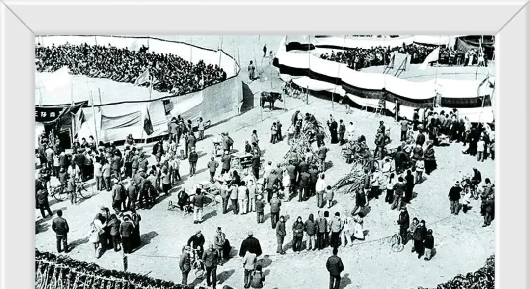这一片大空场热闹着,是物资交流会赶集的地儿,临时棚布一圈一圈地围起来,自行车密密麻麻堵着路口,货摊上摆着小动物、玩杂耍的,父亲掏零钱偷偷塞给我怕丢了,天快黑人都不愿走,谁说那时候苦啊,这一地吵吵闹闹才叫日子有滋味。