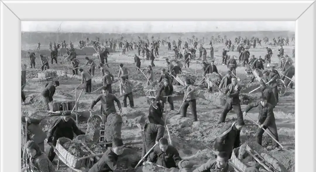 这阵势浩大的场面,是当年文殊河治理,铁锹一把把起、独轮车咯吱推,肩膀搭着毛巾汗水咸,奶奶在堤边端着热水壶喊人歇会,那时候只靠人扛,地里挖一天腰都直不起来,现在有机械帮忙,再宽的河也不愁。