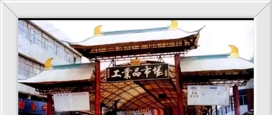 这道高高挑起的门楼写着工业品市场,屋顶四角飞翘,过道底下一摊一摊摆得齐整,卖衣服的大声喊价,小时候买件新棉袄总想多挑一会儿,家里人守着怕我给讲价讲亏了,赶集才有的独特热闹劲,听见一嗓子就能回想起来。